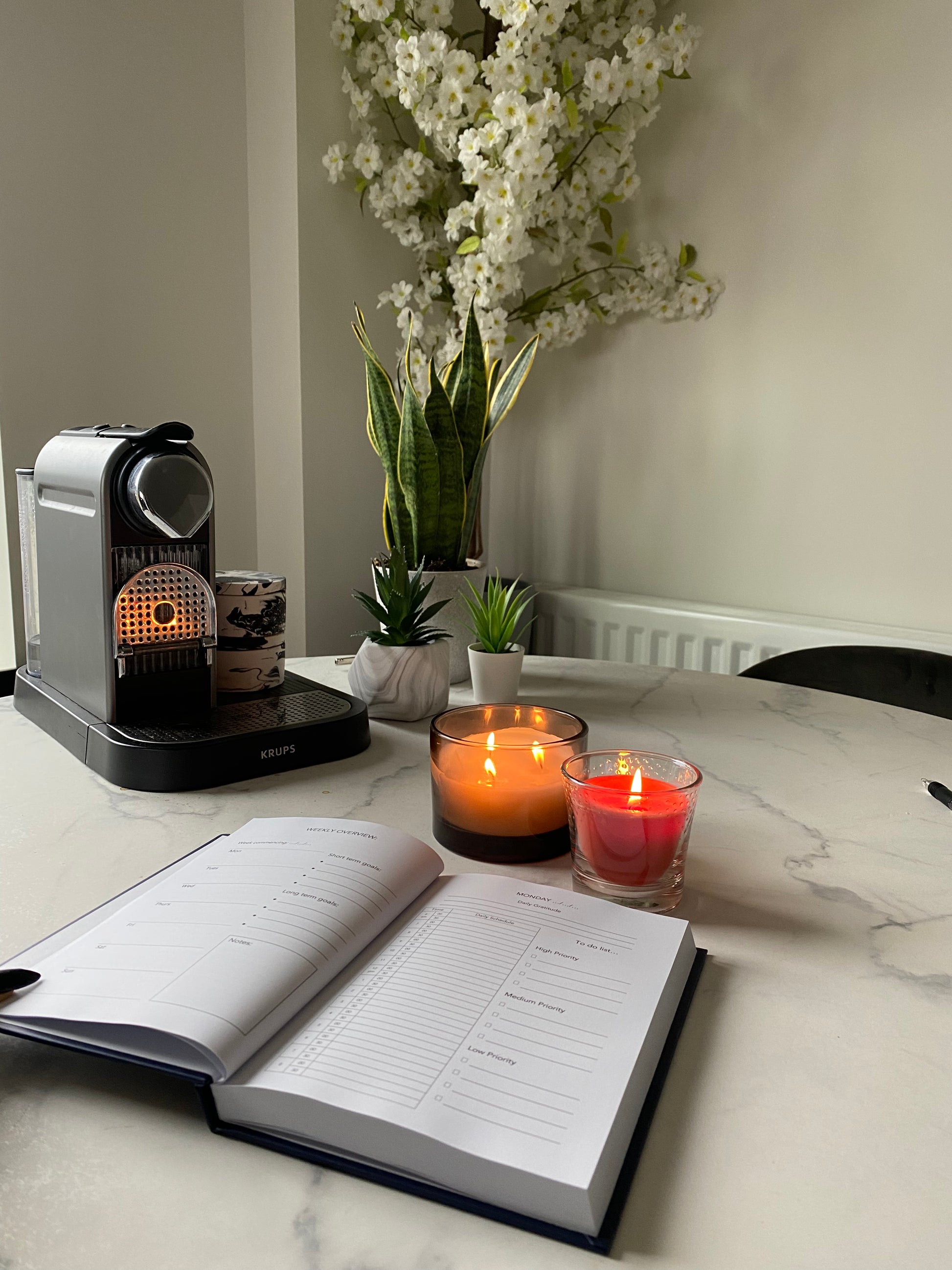 - Create a clear weekly overview and declutter your mind by ‘dumping’ down everything you everything you need to do this week onto paper for the week, including social, appts, meetings, gym etc.